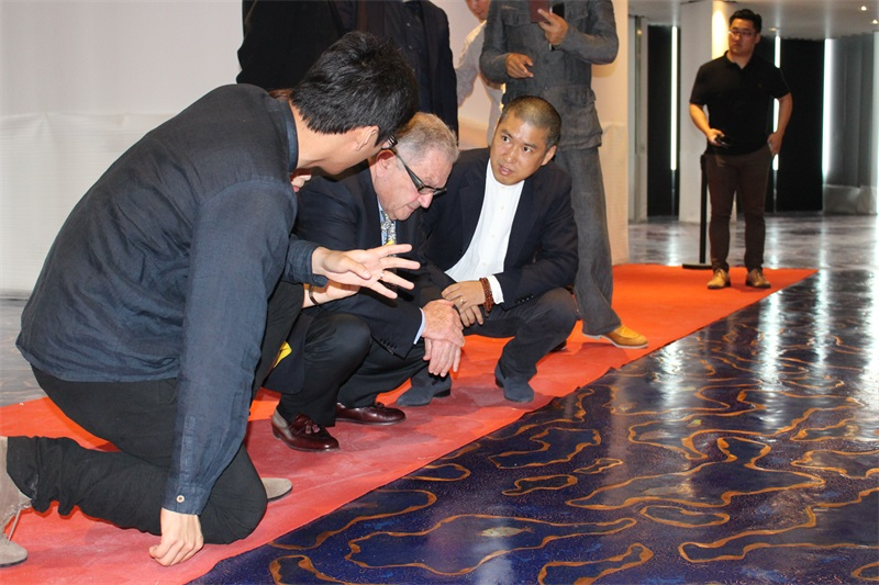 2015年6月20日,在中國建筑上海中心即將開幕之際,世界著名古董泰斗朱塞佩·埃斯卡納齊先生(Giuseppe Eskenazi)在觀復(fù)博物館現(xiàn)任館長馬未都先生和觀復(fù)寶庫創(chuàng)始人柳費(fèi)國先生的陪同下,參觀了位于上海中心37層的觀復(fù)博物館,并特別來到觀復(fù)藝術(shù)空間中觀賞由傳世琺瑯制作的絕世之作——世界首幅480平米無縫拼接琺瑯地面藝術(shù)。這幅絕世之作也即將被納入吉尼斯世界紀(jì)錄,成為被載入史冊的世界首幅琺瑯地面藝術(shù)。
