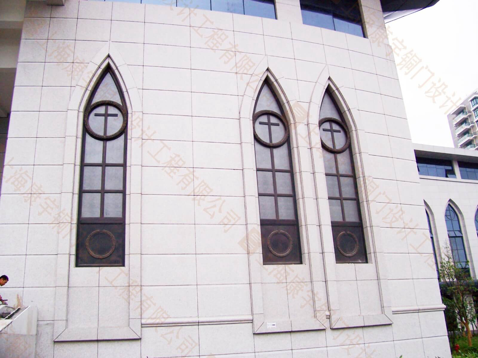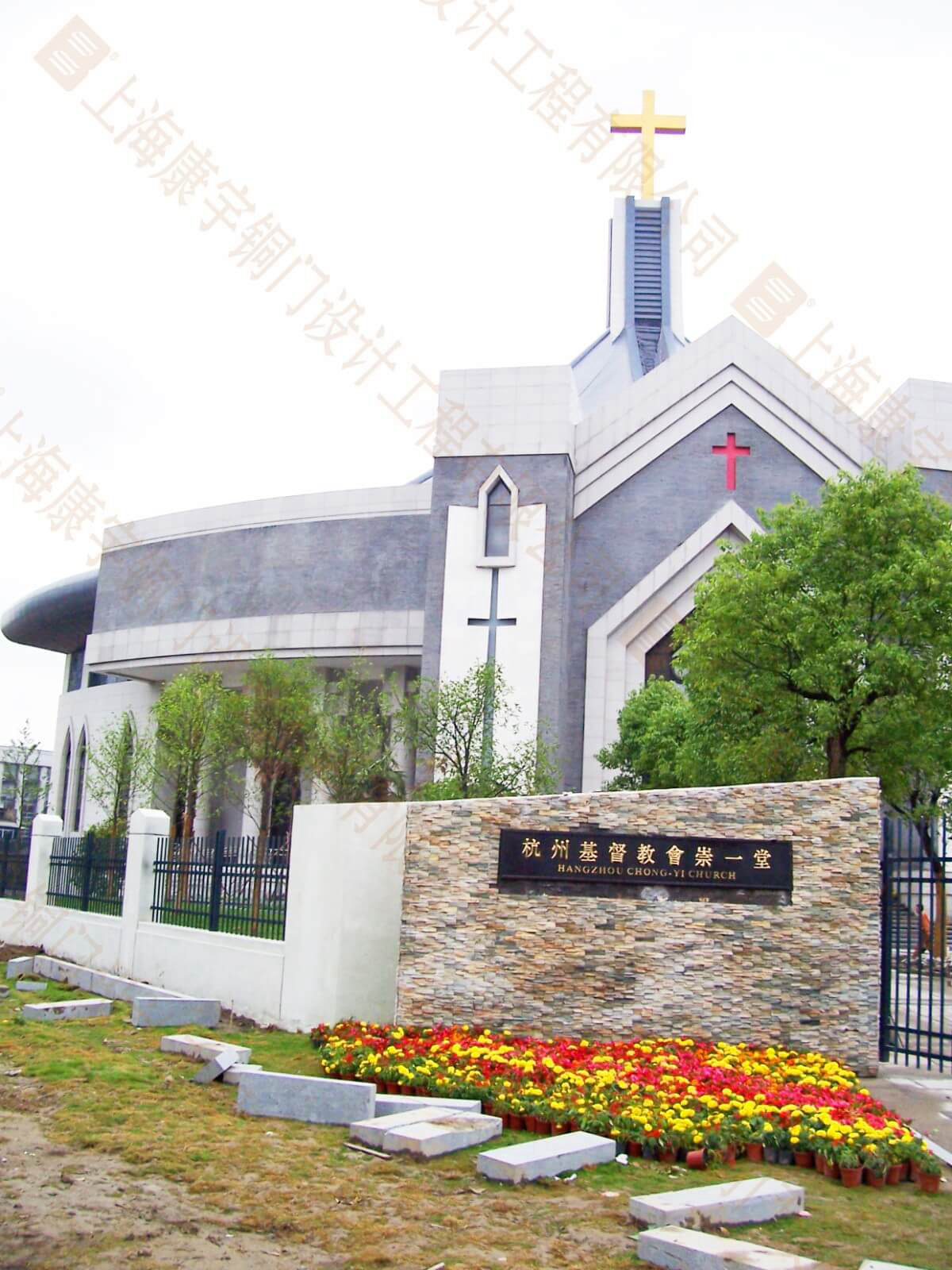 崇一堂主體建筑采用對稱弧形立面及“會幕式”屋頂,把傳統的人字型拱券入口與5米寬開敞柱廊的線條進行簡潔處理,使“傳統”與“現代”有機結合,既保留了宗教建筑的莊嚴感,又表達了“基督是敞開的”。?
