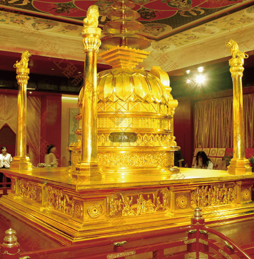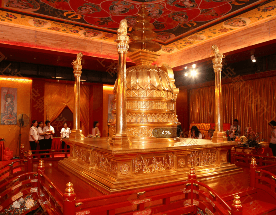 佛牙寺金塔耗時一年高3.6米,寬3.6米銅胚為底,使用黃金近380公斤,金塔總重量達4000余公斤。