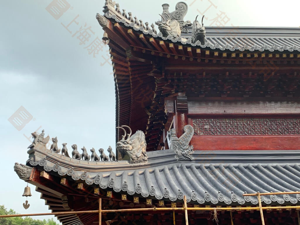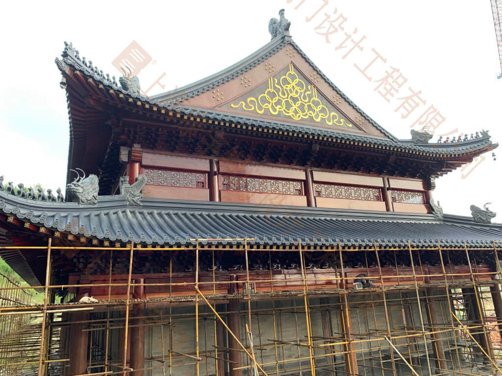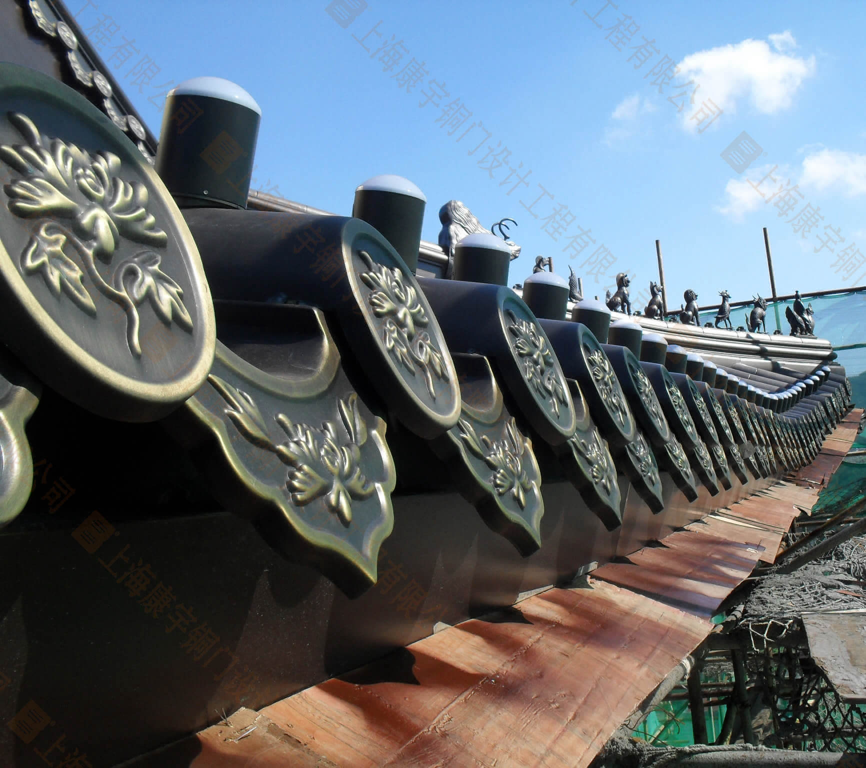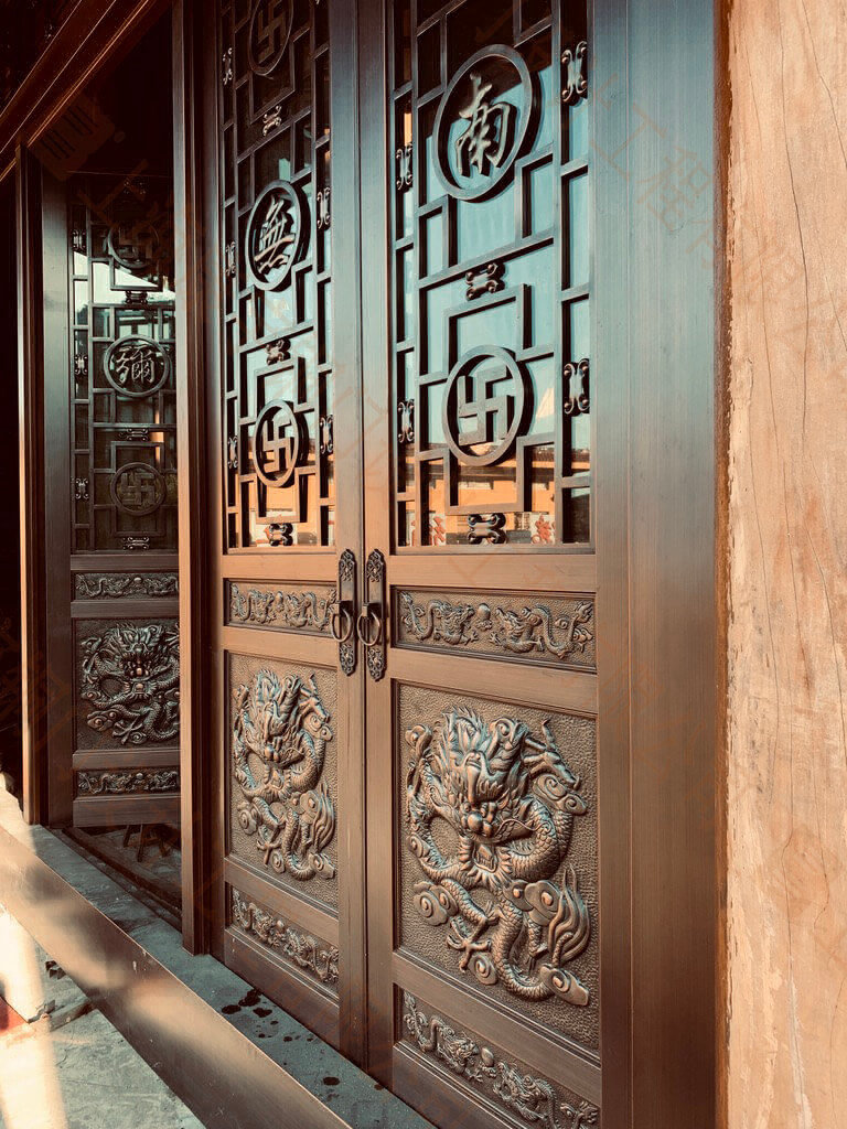 葫蘆島天然寺:建筑面積一萬五千多平米,由我承建銅觀音、銅質經墻、25米銅鍍金釋迦牟尼佛像、銅門窗、全銅大光明殿等